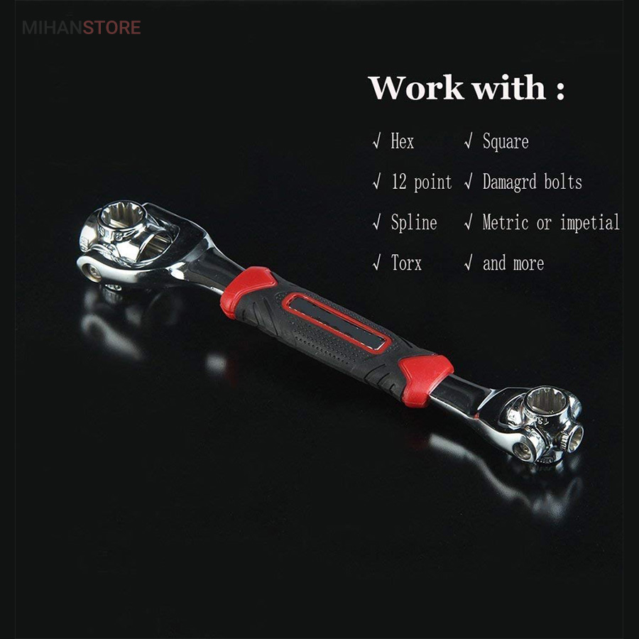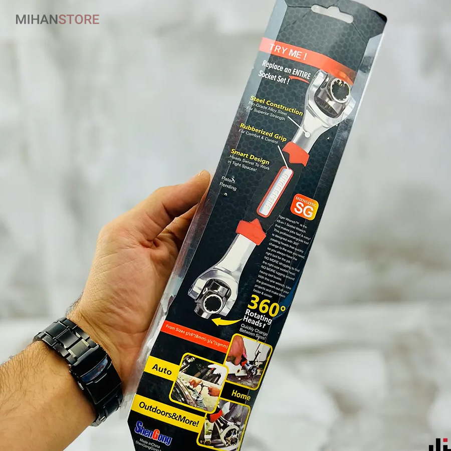 این تنوع سایزها باعث می‌شود که این آچار بتواند جایگزین ۴۸ مدل و سایز مختلف از آچارها باشد، به عبارت دیگر، شما با داشتن این ابزار، می‌توانید مجموعه بزرگی از آچارها را در اختیار داشته باشید که در فضاهای مختلف کاربرد دارند. این ویژگی به خصوص در مواقعی که دسترسی به ابزارهای متعدد محدود است، بسیار مفید و کاربردی خواهد بود.بدنه مقاوم و با کیفیت این آچار، تضمین کننده طول عمر بالای آن است و شما می‌توانید به مدت طولانی از آن استفاده کنید. این ویژگی باعث می‌شود که هزینه‌های تعمیر و نگهداری ابزار کاهش یابد و شما بتوانید با اطمینان از آن در شرایط مختلف استفاده کنید.